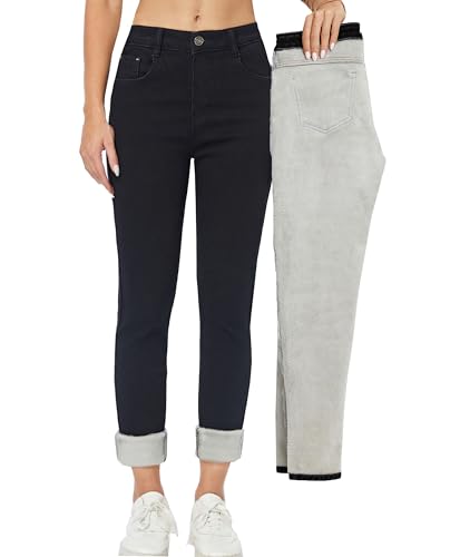 heipeiwa Women's Winter Jeans Fleece Lined Jeans Thermal Thick Skinny Denim Pants Slim Stretch Warm Jeggings, Blacksolid 102, S