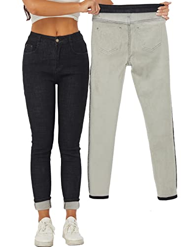 Yehopere Women Winter Jeans Skinny Jeans Fleece Lined Zip Slim Fit High Waist Jeggings - Black - Medium