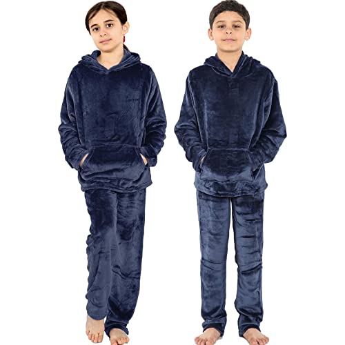 A2Z 4 Kids Childrens Warm Fleece Twosie Hooded Pyjamas - PJS 215 Navy 9-10