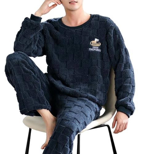 MdybF Fleece pyjamas men Winter Homewear Thick Color Sleeve Fleece Men'S Pajama Pajama Fashion Sets Long Sets Coral Neck Piece Solid Loose Set Warm