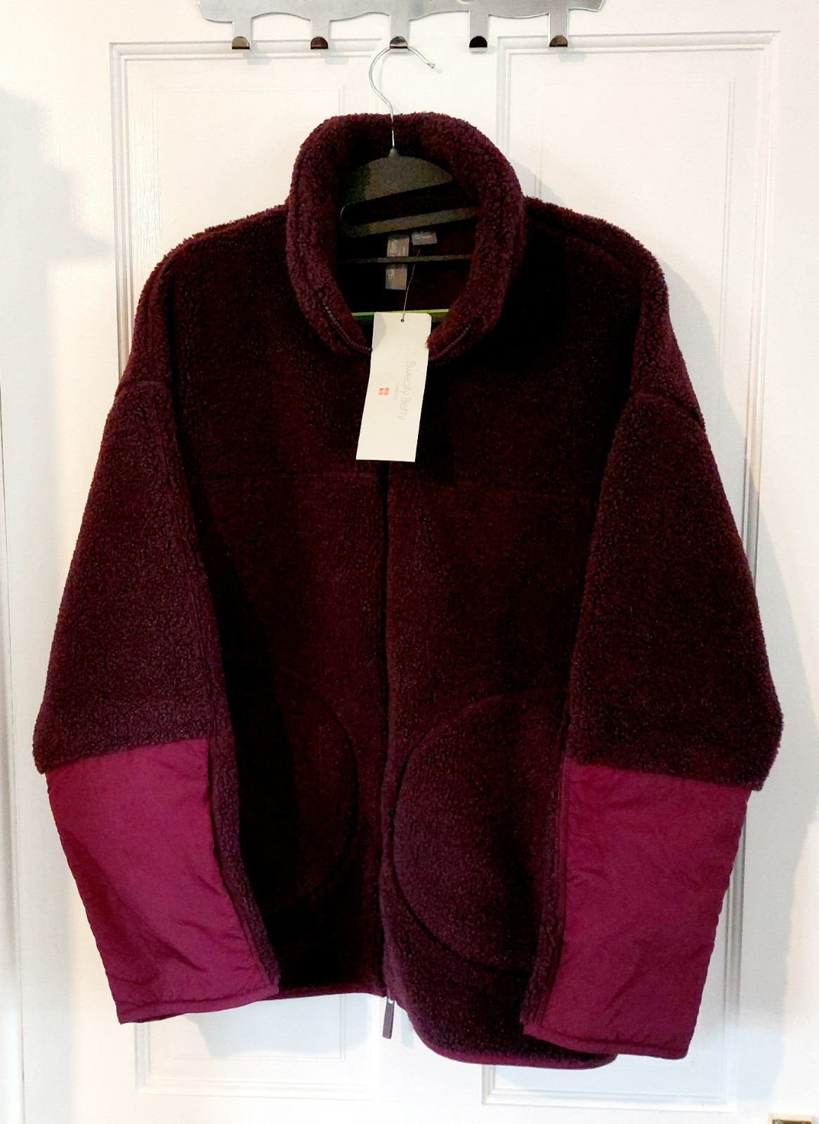 Sweaty Betty Plush Teddy Fleece Zip Jacket S Purple BNWT Oversized Funnel Neck