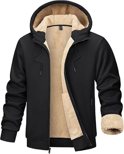 TACVASEN Mens Zip Up Hoodie Fleece Lined Hoodies Sweatshirts Winter Teddy Fleece Jacket with Pockets Black,S