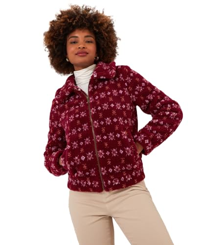 Joe Browns Women's Cosy Floral Patterned Collared Teddy Fleece Jacket, Regular Fit, Dark Red, UK 16