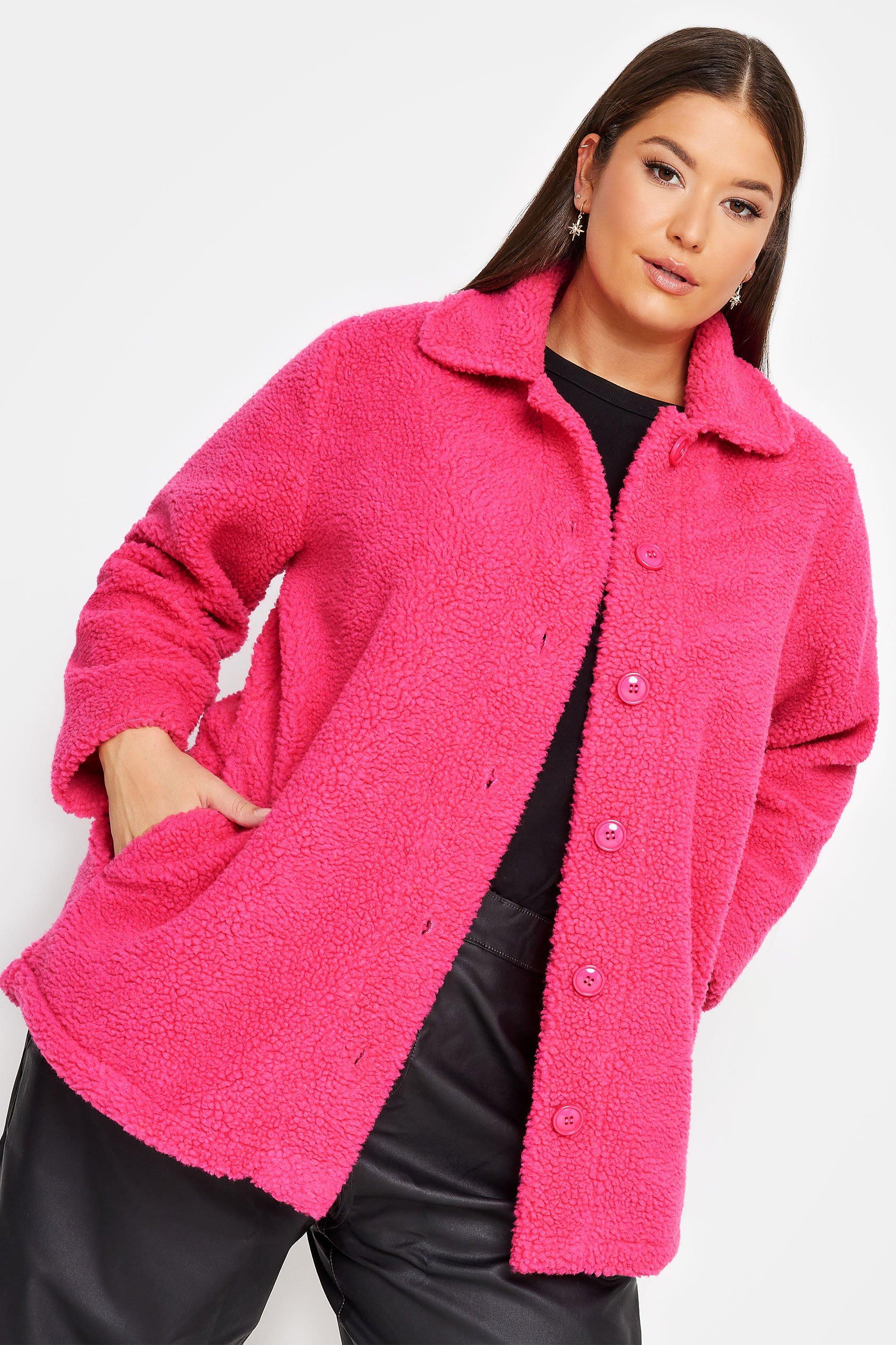 Fleece Jacket Men's Winter Warm Sherpa Jacket Patchwork Teddy Fleece Jacket Outerwear Teddy Fleece with Stand-up Collar Fluffy Shaggy Teddy Jacket Winter Jacket with Zipper Thickened Plush Jacket(Pink