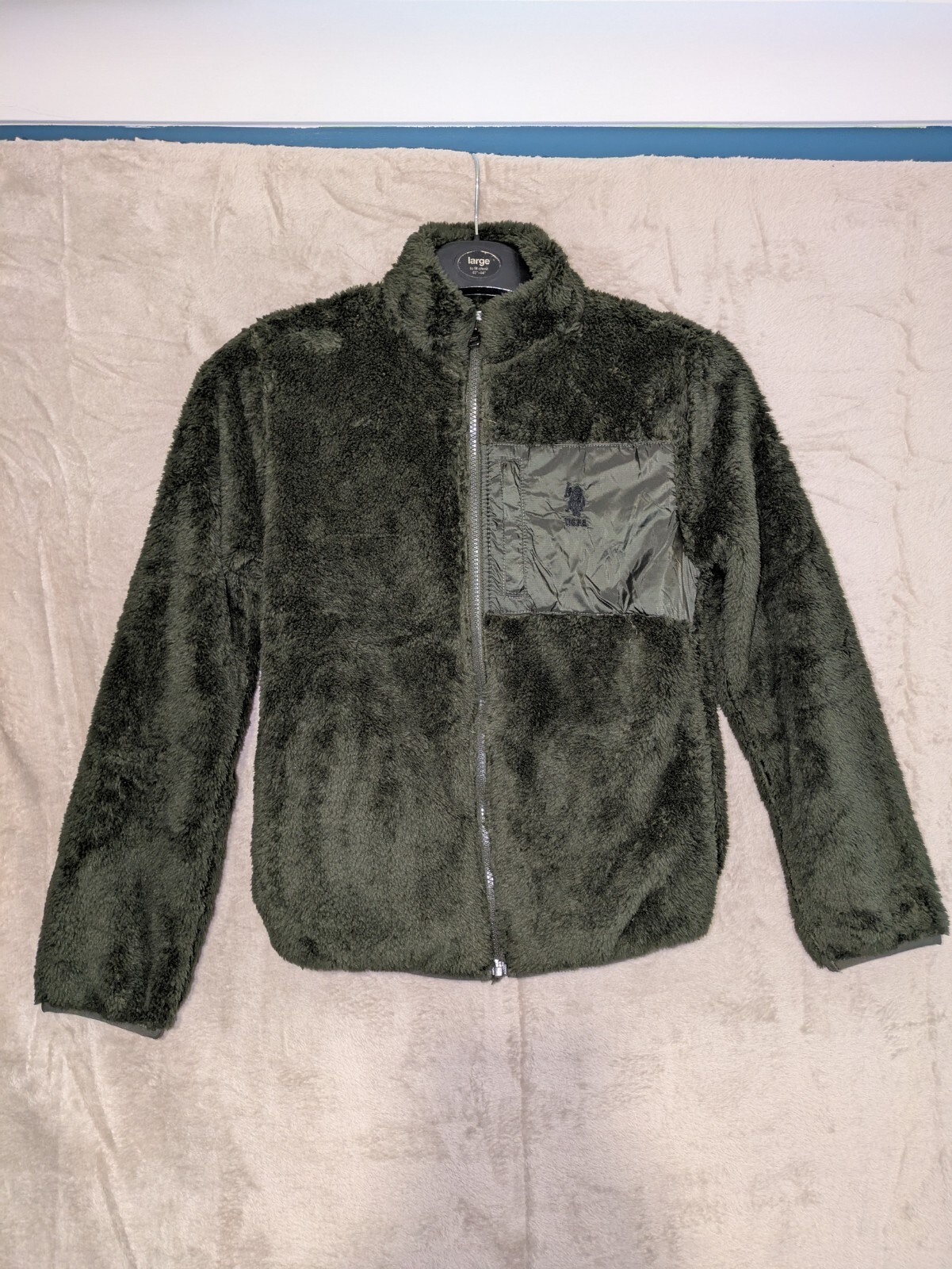 U.S. Polo Assn Boys Teddy Fleece Jacket Age 9–10 Army Green Full Zip NWT