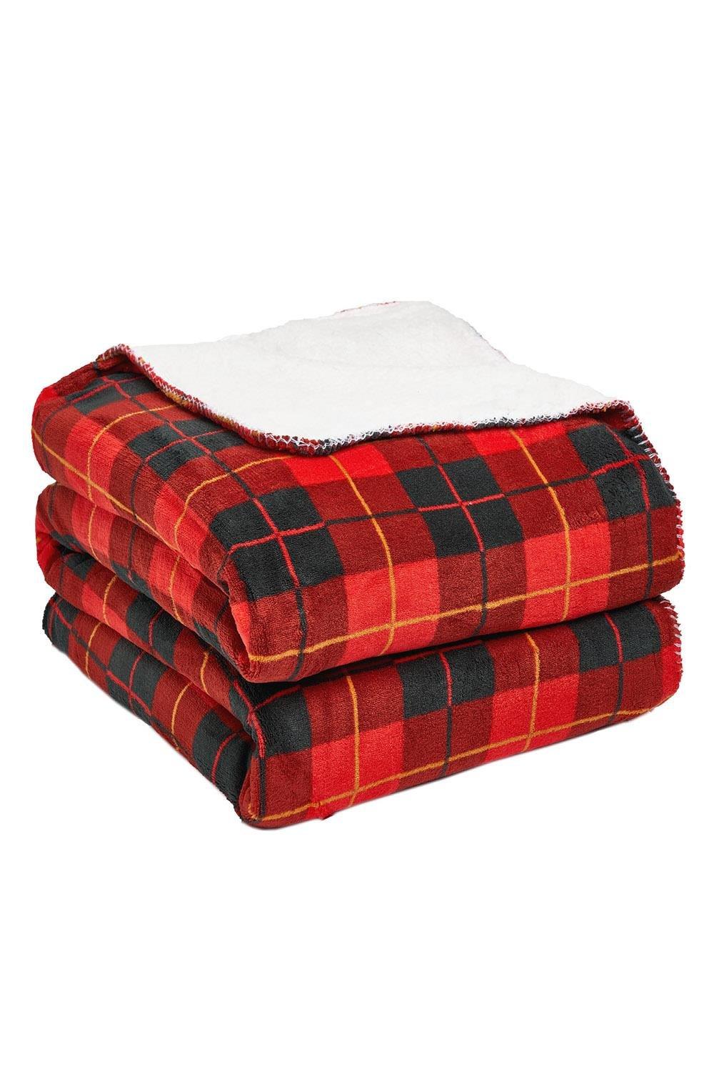 Large Tartan Sherpa Flannel Fleece Throw Over Bed Blanket Check Red