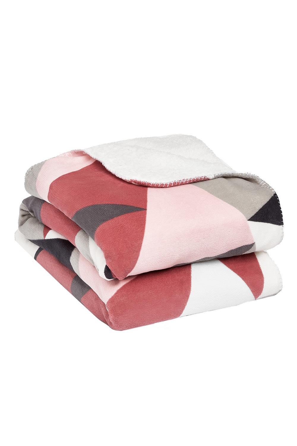Geometric Shapes Fleece Sherpa Throw Bed Blanket