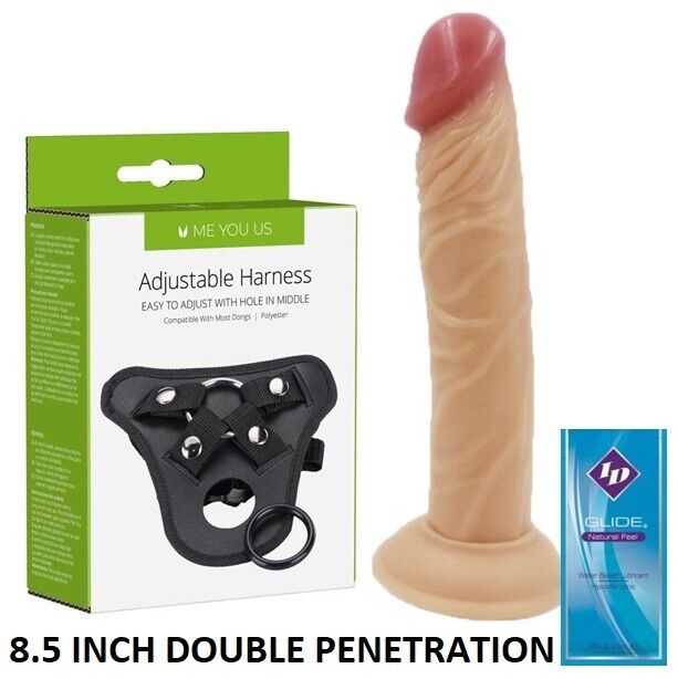 Male Strap On Harness for Double Penetration with 8.5 Inch Flesh Dildo + LUBE