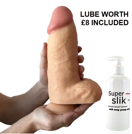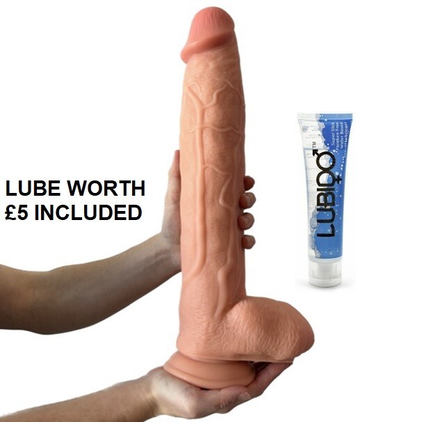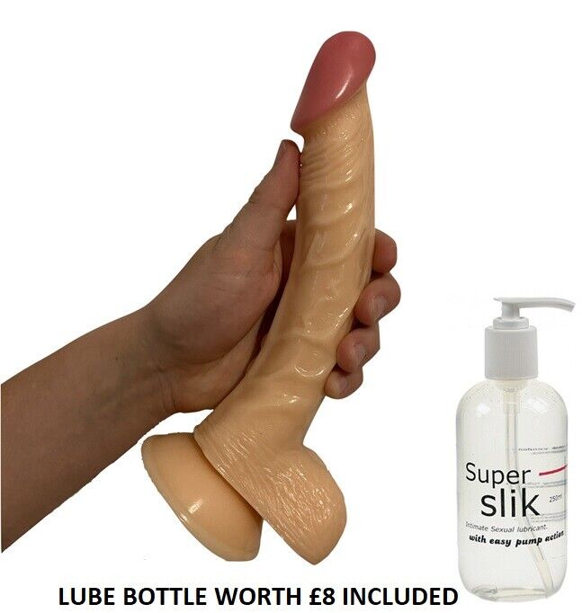 Big Dildo Sex Toy Realistic 10 Inch FLESH HUGE GIRTH Balls Suction Cup + £8 LUBE