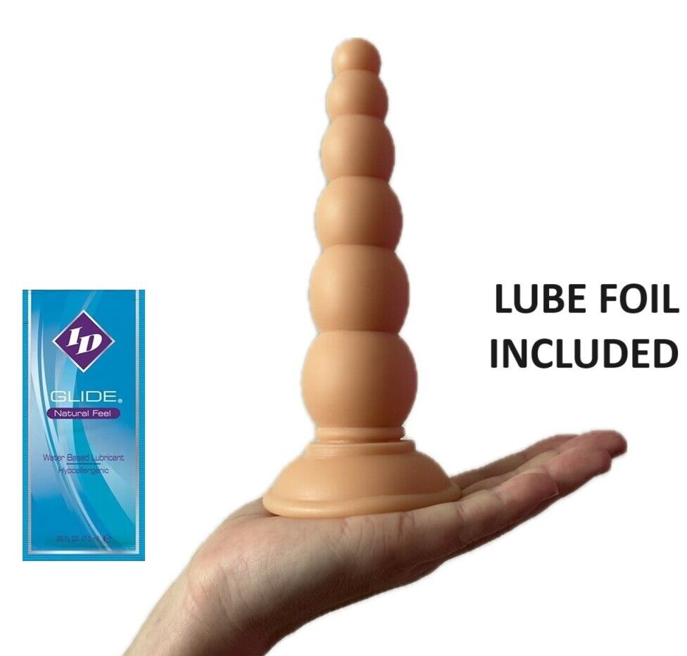 Anal Dildo Ribbed 7 Inch Flexible FLESH Unisex SUCTION CUP Butt Plug