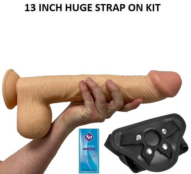 Dildo 13 Inch HUGE Realistic Flesh Suction Cup STRAP-ON KIT Black Harness