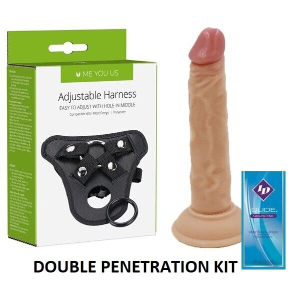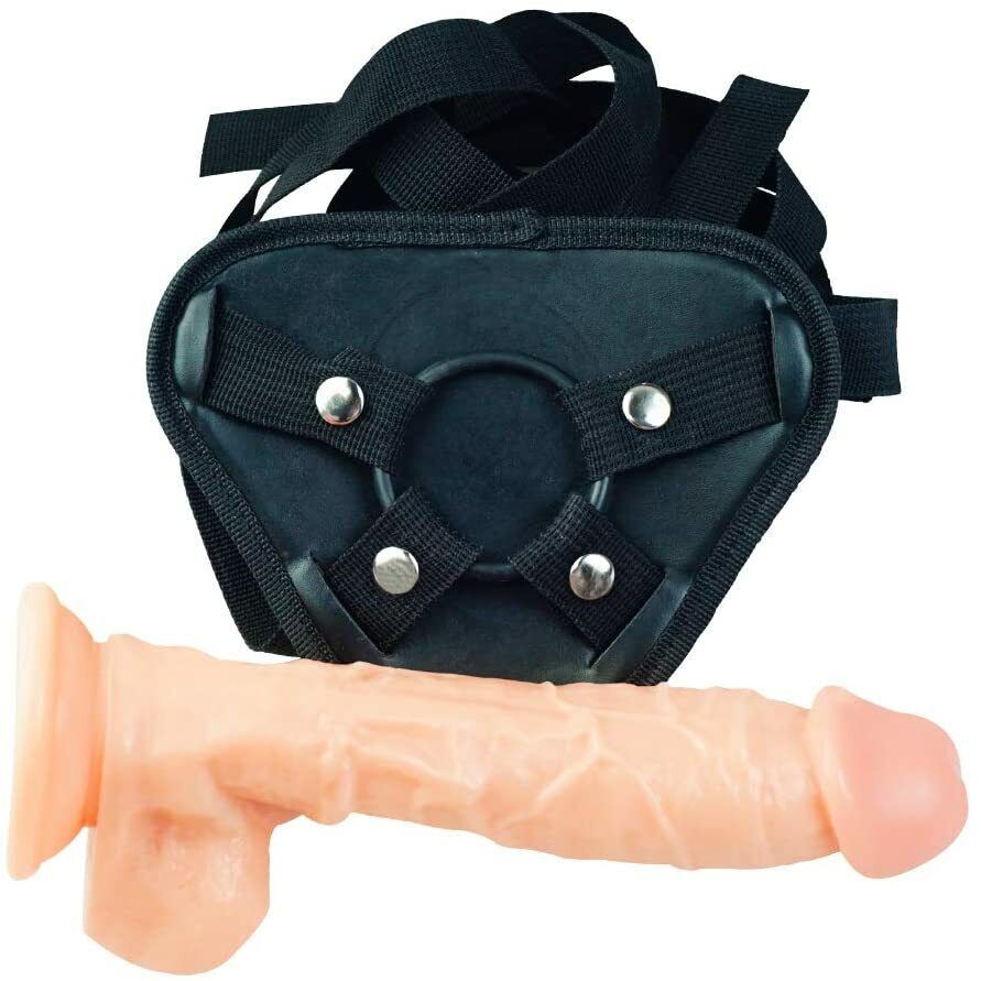 Strap On Kit 7 Inch Realistic Flesh Dildo + Black Harness Pegging Couples Sex