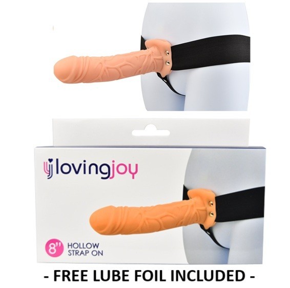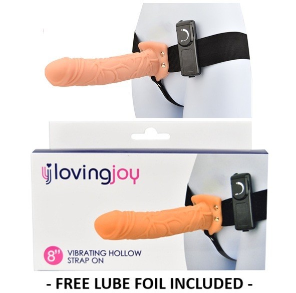 Vibrating Hollow Strap On Dildo 8 Inch Flesh Realistic Sleeve Elastic Waist
