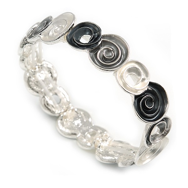 Black/ Grey/ Metallic/ White Enamel Twirl Disc Flex Bracelet In Silver Tone -