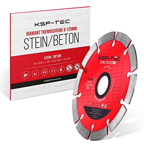 KSP-Tec® Cutting disc 125 mm for stone, concrete, masonry, flex disc for angle grinder and flex 125 mm (125 mm, diamond cutting disc)