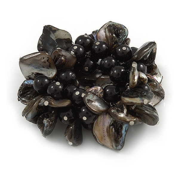 125g Chunky Black Ceramic Beads and Shell Nuggets Flex Bracelet - 18cm L
