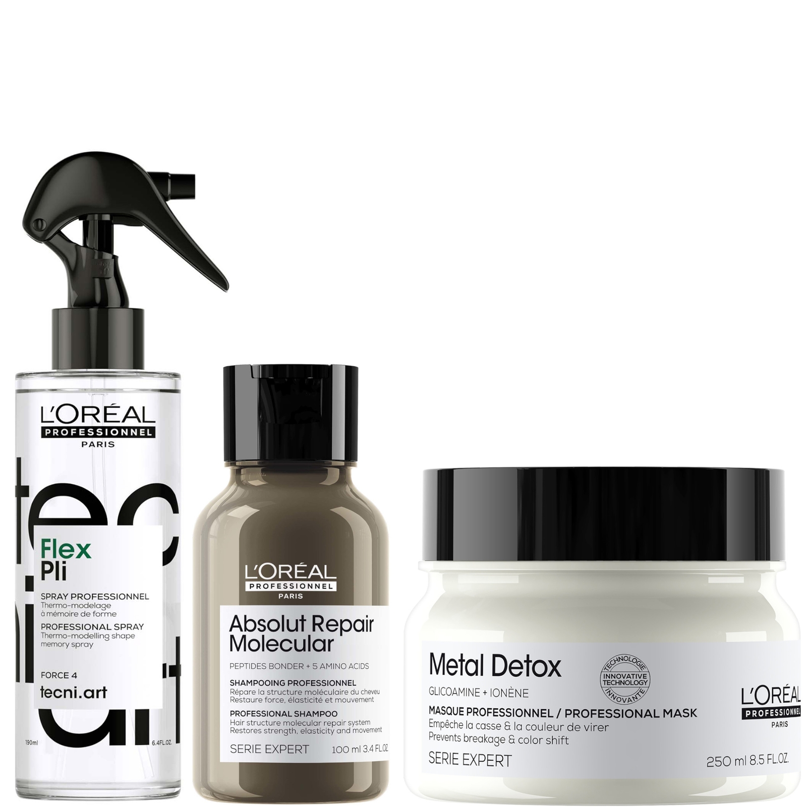 L'Oréal Professionnel Metal Detox Hair Mask & Tecni Art Flex Pli Styling Spray, with Free Mini Shampoo, 250ml, 190ml & 100ml