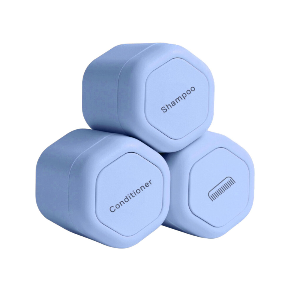 Cadence Travel Containers - Haircare Set - Magnetic Travel Capsules - For Shampoo, Conditioner, Hair Styling Product - 3 Flex Mediums (1.32oz) with Sh