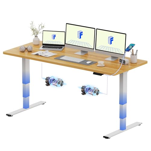 FLEXISPOT Electric Standing Desk ONE PIECE Height Adjustable Sit Stand Up Desk with Memory Smart Pannel (White Frame+Maple Desktop)