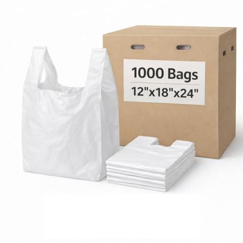 lianpak FlexTech White Clear Vest Carrier Bags (1000, 12"x18"x24")