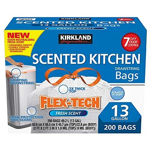 Kirkland Signature Flex-Tech 13-Gallon Scented Kitchen Trash Bags, 200-count