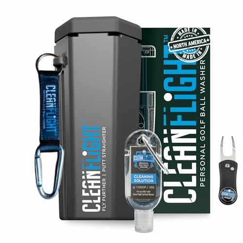 Clean Flight Premium Golf Ball Washer Portable Cleaner for Golf Bag or Cart - Best Golf Accessories Gifts for Men & Women (Washer -1 Pack)