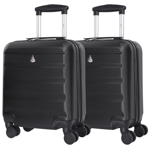 Aerolite 45x36x20cm Easyjet Maximum Size 8 Wheel ABS Hard Shell Carry On Hand Cabin Luggage Underseat Flight Travel Bag Spinner Suitcase 45x36x20 with TSA Lock (2 x Black)