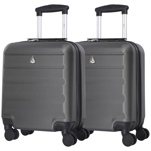 Aerolite 45x36x20cm Easyjet Maximum Size 8 Wheel ABS Hard Shell Carry On Hand Cabin Luggage Underseat Flight Travel Bag Spinner Suitcase 45x36x20 with TSA Lock (2 x Charcoal)