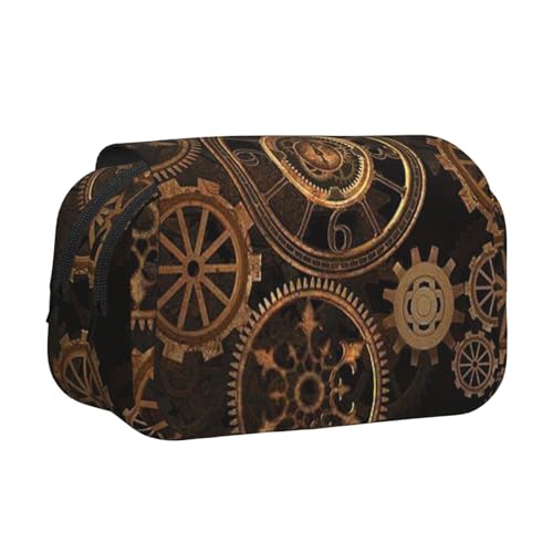 Large Capacity Pencil Case For Girls & Boys, Double Layer Pencil Case With Flip Top, Gears Clock Bronze Century Pen Bag Organizer, Portable Office Stationery Makeup Bag Pencil Pouch For School College