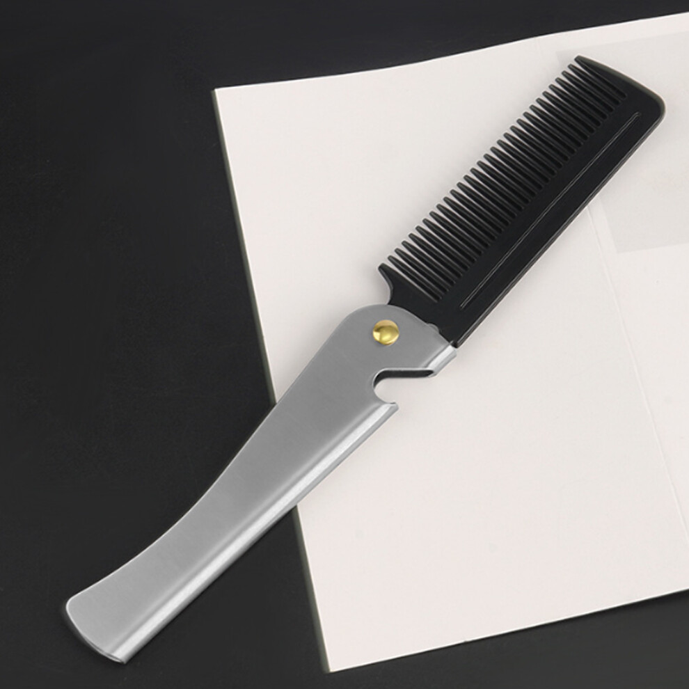 Portable Folding Beard Hair Comb, Stainless Steel Pocket Comb, Travel Hair Brush Compact Flip Comb, for Men Thick Thin Hair for Beard Grooming, Hair