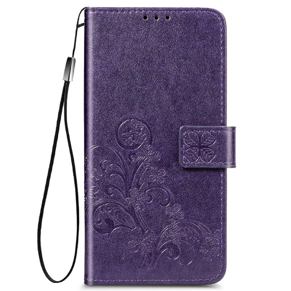(Dark violet) Case For Xiaomi Redmi Note 9 4G Flip Cover Four Leaf Clover Exquisite Business Leather Case Short Strap