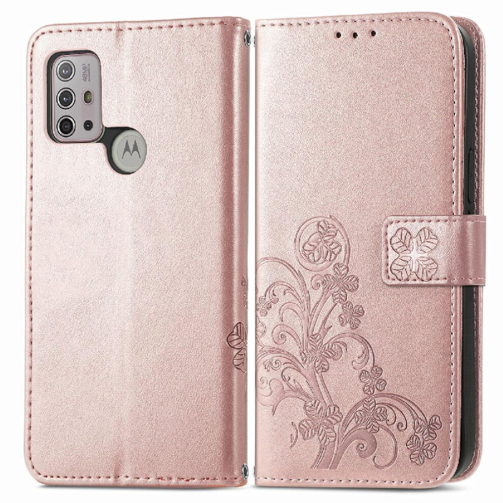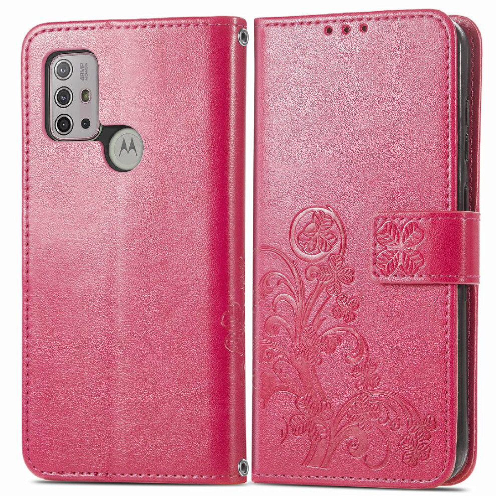 (Pink) Case For Motorola MOTO G10 Flip Cover Four Leaf Clover Exquisite Business Leather Case Short Strap