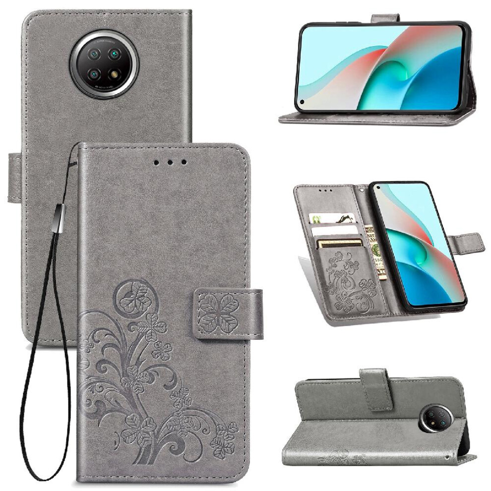 (Gray ) Case For Xiaomi Redmi Note 9 5G Short Strap Exquisite Business Flip Cover Four Leaf Clover Leather Case