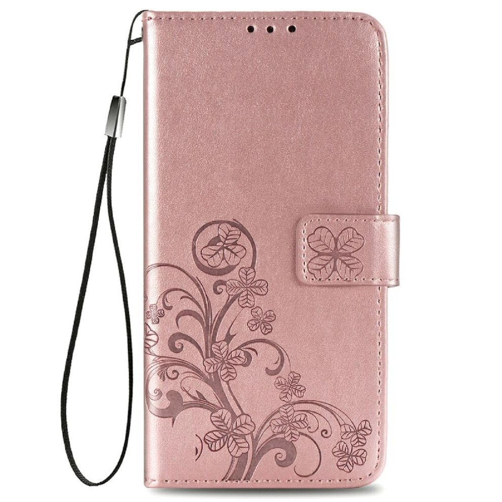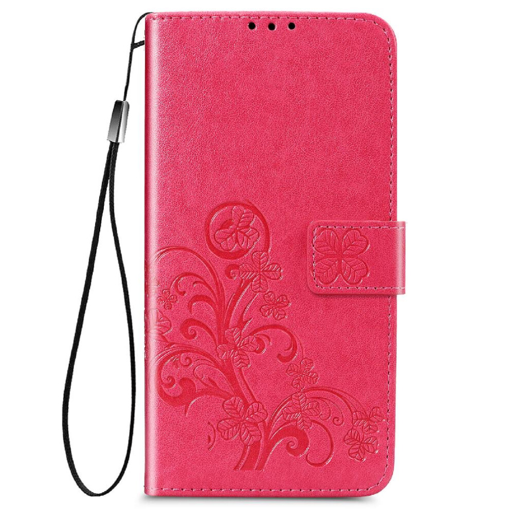(Pink) Case For Xiaomi Redmi Note 9 4G Flip Cover Four Leaf Clover Exquisite Business Leather Case Short Strap