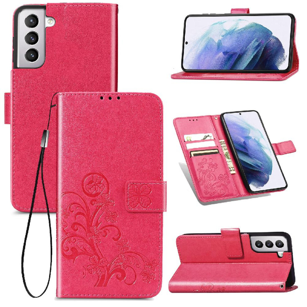 (Pink) Case For Samsung Galaxy S21 Exquisite Business Short Strap Flip Cover Four Leaf Clover Leather Case