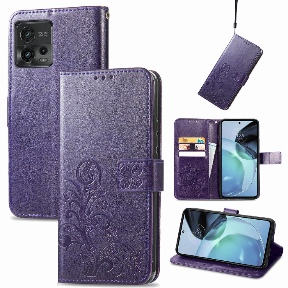 (Dark violet) Case For Motorola MOTO G10 Flip Cover Four Leaf Clover Exquisite Business Leather Case Short Strap