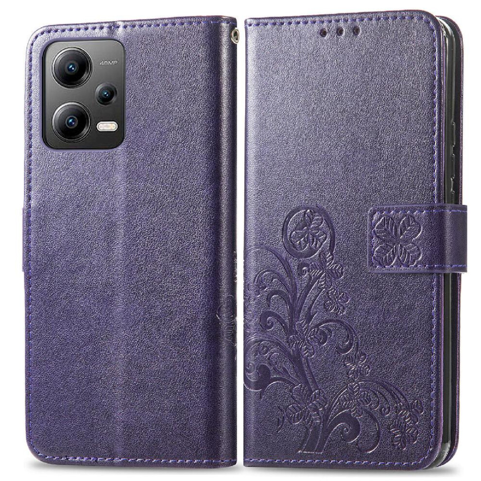 (Dark violet) Case For Xiaomi POCO X5 Leather Case Exquisite Business Flip Cover Four Leaf Clover Short Strap