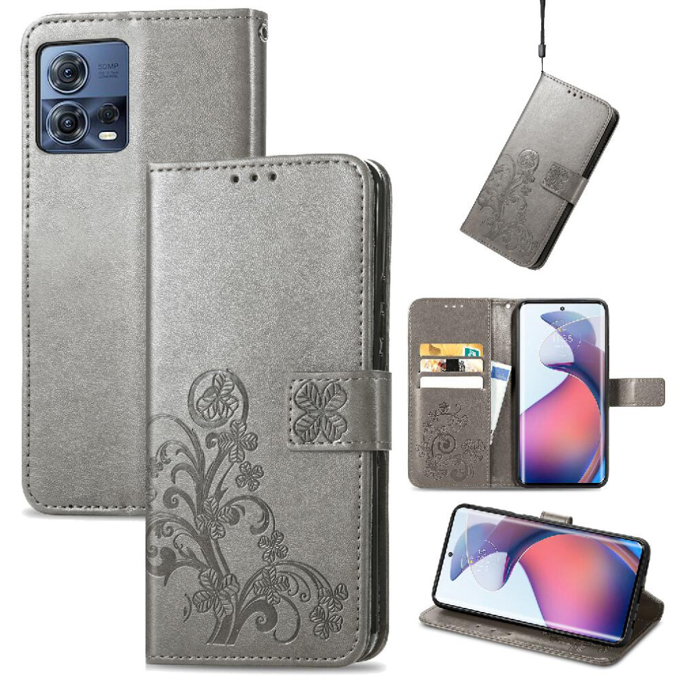 (Gray ) Case For Motorola MOTO S30 Pro Leather Case Flip Cover Four Leaf Clover Exquisite Business Short Strap