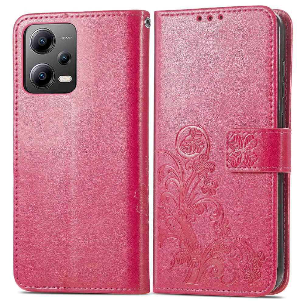 (Pink) Case For Xiaomi POCO X5 Leather Case Exquisite Business Flip Cover Four Leaf Clover Short Strap
