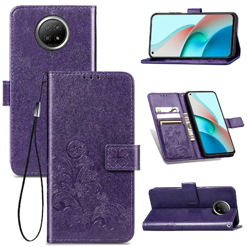 (Dark violet) Case For Xiaomi Redmi Note 9 5G Short Strap Exquisite Business Flip Cover Four Leaf Clover Leather Case