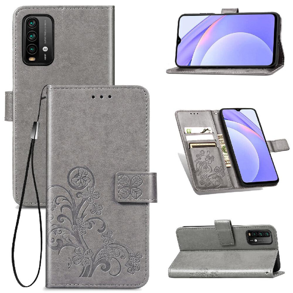 (Gray ) Case For Xiaomi Redmi Note 9 4G Flip Cover Four Leaf Clover Exquisite Business Leather Case Short Strap