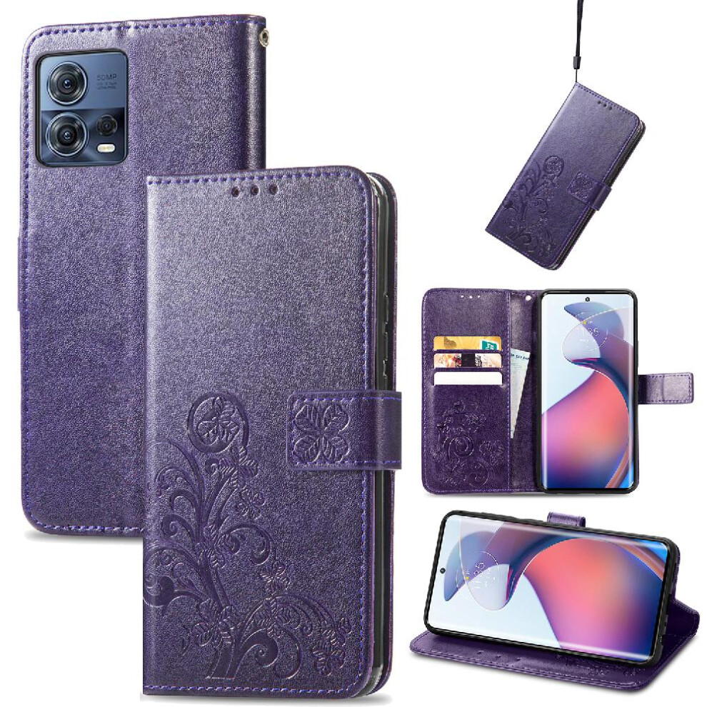 (Dark violet) Case For Motorola MOTO S30 Pro Leather Case Flip Cover Four Leaf Clover Exquisite Business Short Strap