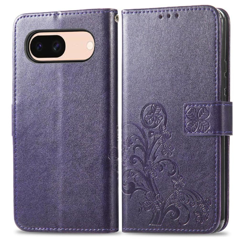 (Dark violet) Flip Case for Google Pixel 8a Leather Case Flip Cover Four Leaf Clover Exquisite Business Short Strap