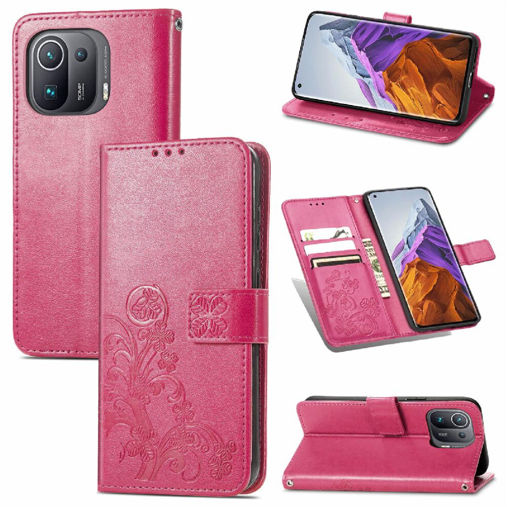 (Pink) Case For Xiaomi 11 Pro Flip Cover Four Leaf Clover Exquisite Business Short Strap Leather Case