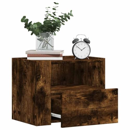 QJBSAVVA Wall-Mounted Bedside Cabinet Smoked Oak 40x31x39.5 cm, Slim Floating Nightstand with Drawer & Shelf, Space-Saving Bedroom Furniture for Living Room Corridor and Bedroom