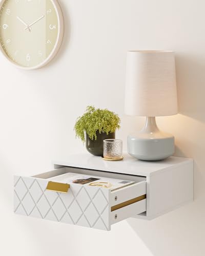 HEYZOEY Floating Bedside Table, Side Table, Modern Floating Shelves with Drawer, Floating Drawer for Living Room,Bathroom,Bedroom,White (No Assembly)