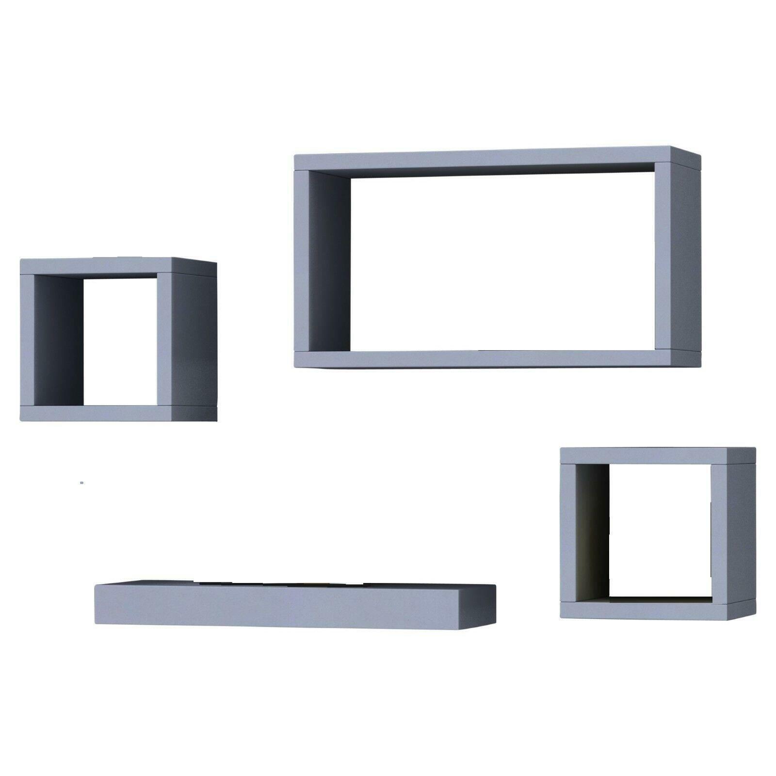 Set Of 4 Grey Wooden Floating Cube Shelves Wall Hanging Storage Deco Shelving