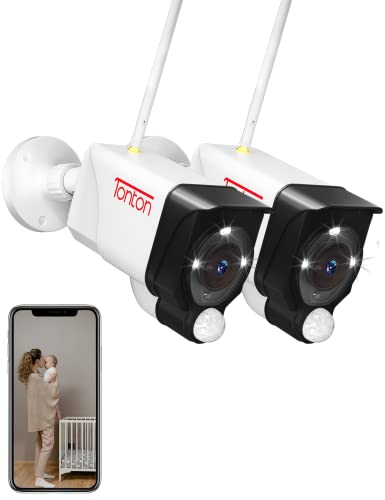 (2 Pack) Tonton 3MP WiFi CCTV Camera Outdoor, Floodlight Security Camera, Color Night Vision, PIR Motion Detection with Siren & Email Alerts, 2 Way Audio, SD Card Slot, Work with Tonton NVR Recorder