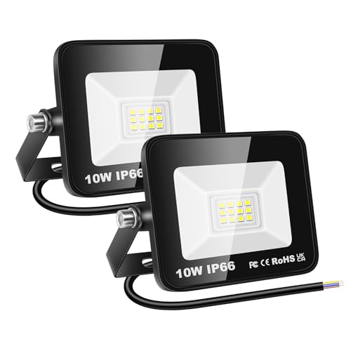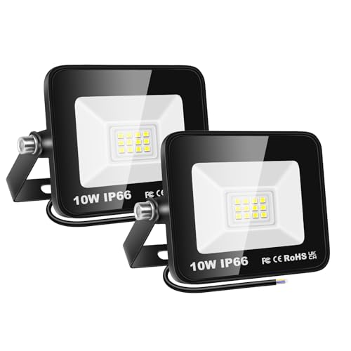 PICAA 2PCS 10W LED Flood Lights Outdoor, Super Bright Security Lights, IP66 Waterproof Floodlight, Cold White (6500K) Wall Light, Perfect for Garden, Yard, Garage, Patio,Warehouse, Parking Lot