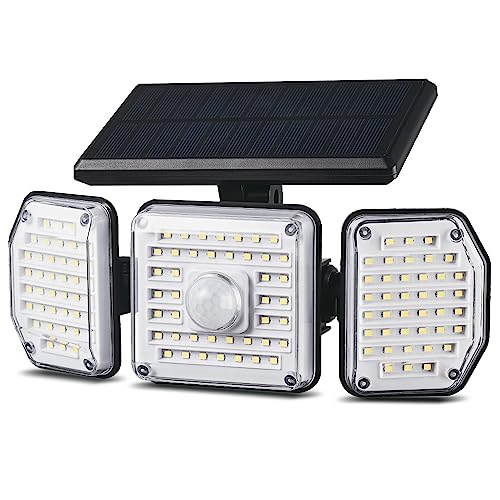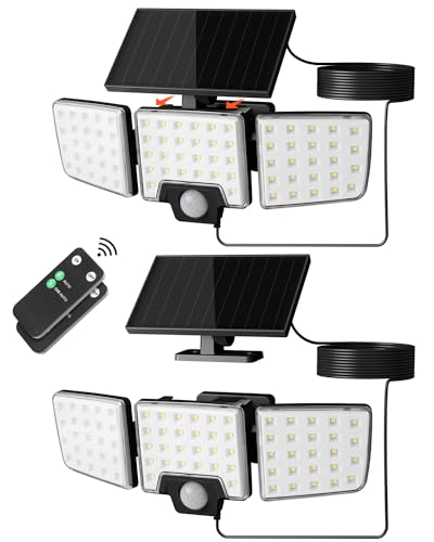 Lepro Solar Security Lights Outdoor Motion Sensor, 2 in 1 Separated and Integrated Remote Control IP65 Waterproof Solar Lights with 3 Light Modes, 3 Heads Solar Floodlight for Garden Yard